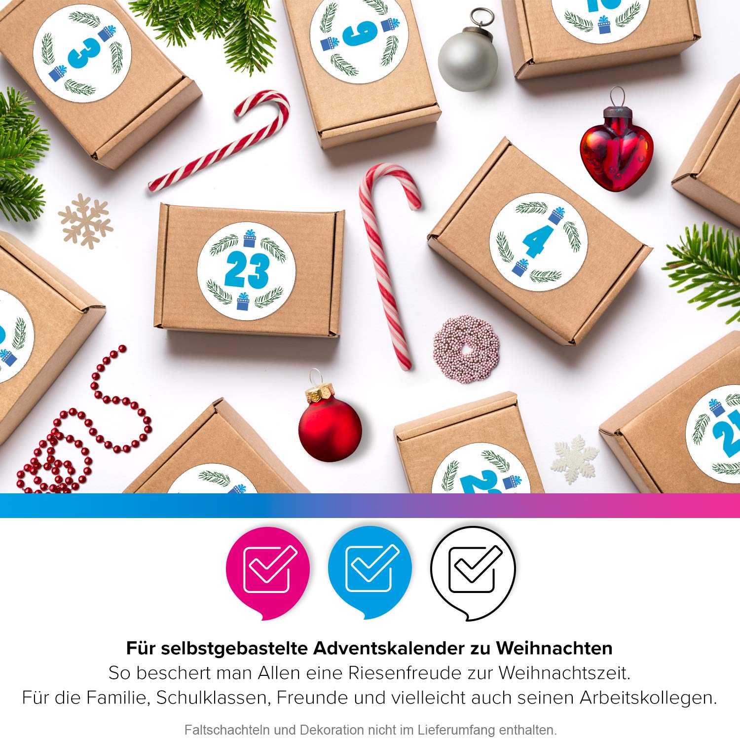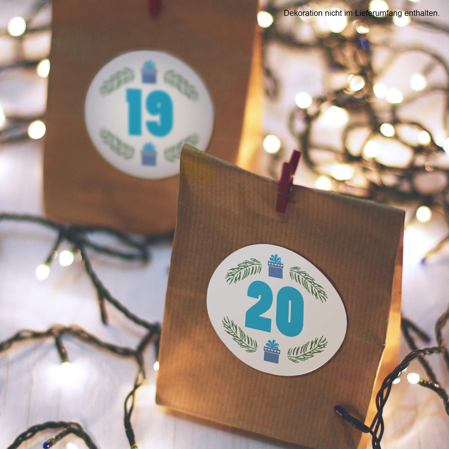 Adventskalender Zahlen Aufkleber – 24 runde Sticker (4 cm) mit den Zahlen 1 bis 24. Ideal zum Basteln von DIY-Adventskalendern, für Tüten, Schachteln, Umschläge & Geschenke.