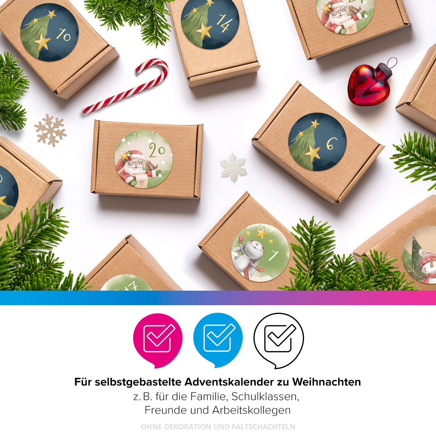 Adventskalender Zahlen Aufkleber – 24 runde Sticker (4 cm) mit den Zahlen 1 bis 24. Ideal zum Basteln von DIY-Adventskalendern, für Tüten, Schachteln, Umschläge & Geschenke.