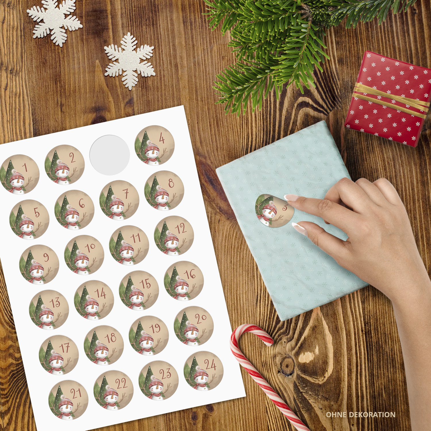 Adventskalender-Zahlen Aufkleber 1 bis 24 / Niedlicher Schneemann / Etiketten / Sticker / Weihnachtskalender / Advent / Rund / DIY / zum Aufkleben