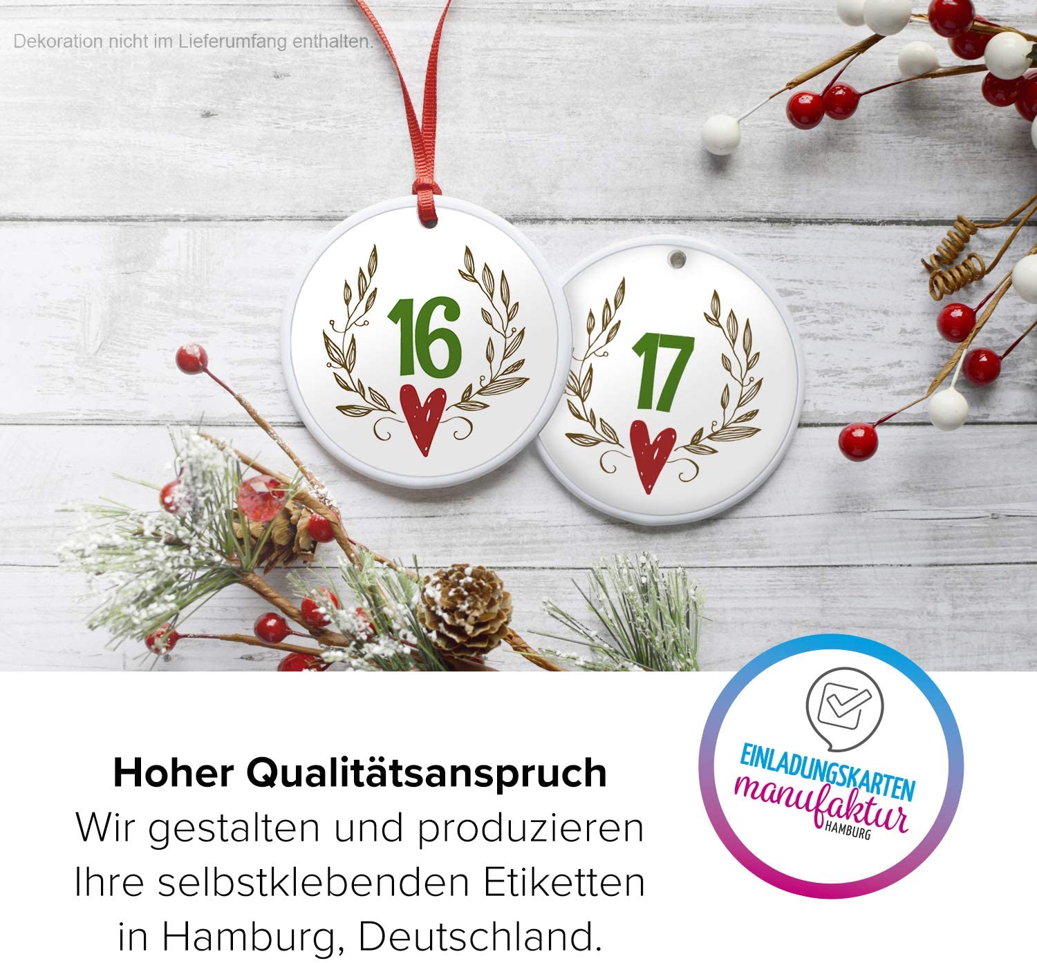 • Design: Zahlen 1 bis 24 in festlichem Look