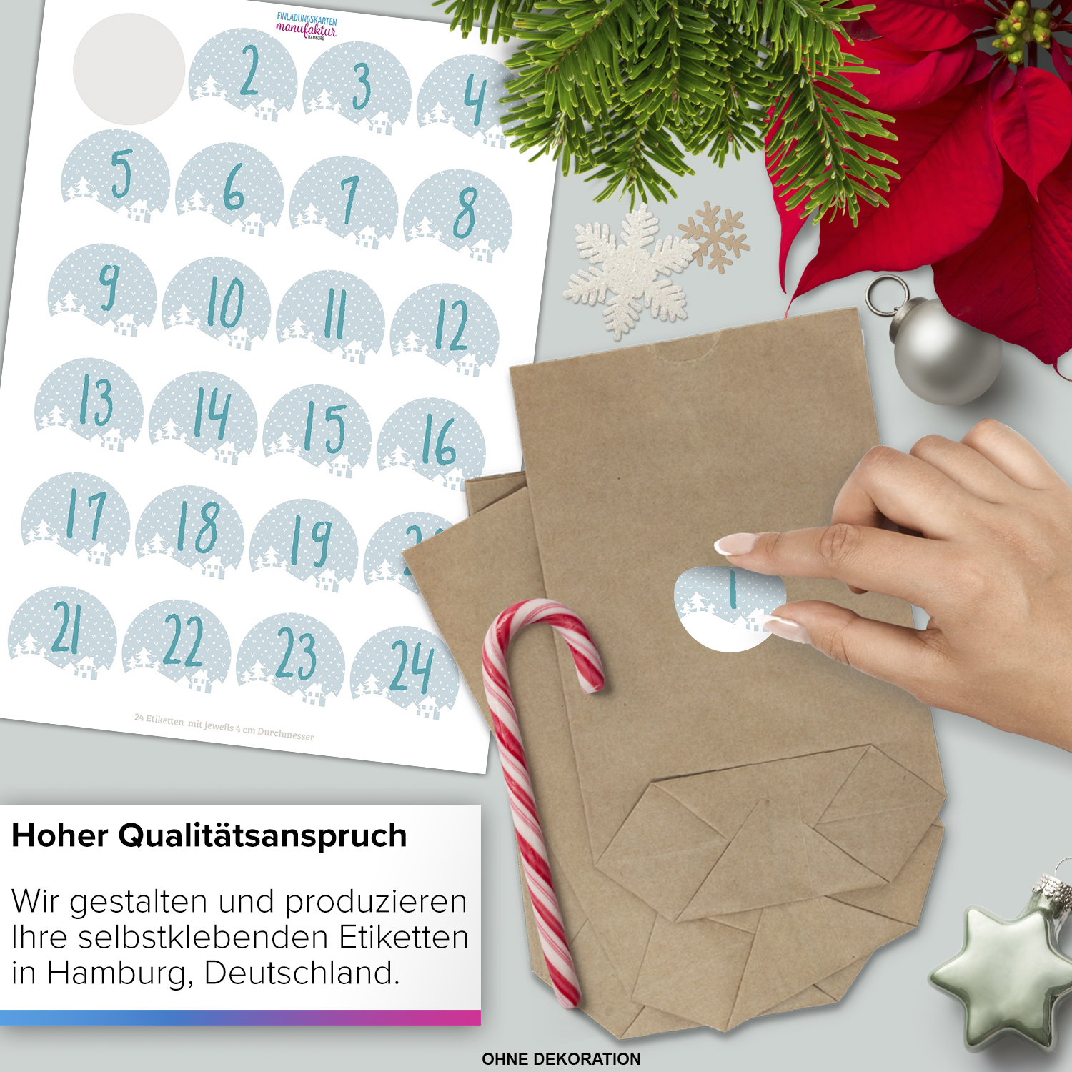 Adventskalender Set – 24 Etiketten & 24 Kraftpapier Beutel für kreative DIY-Ideen