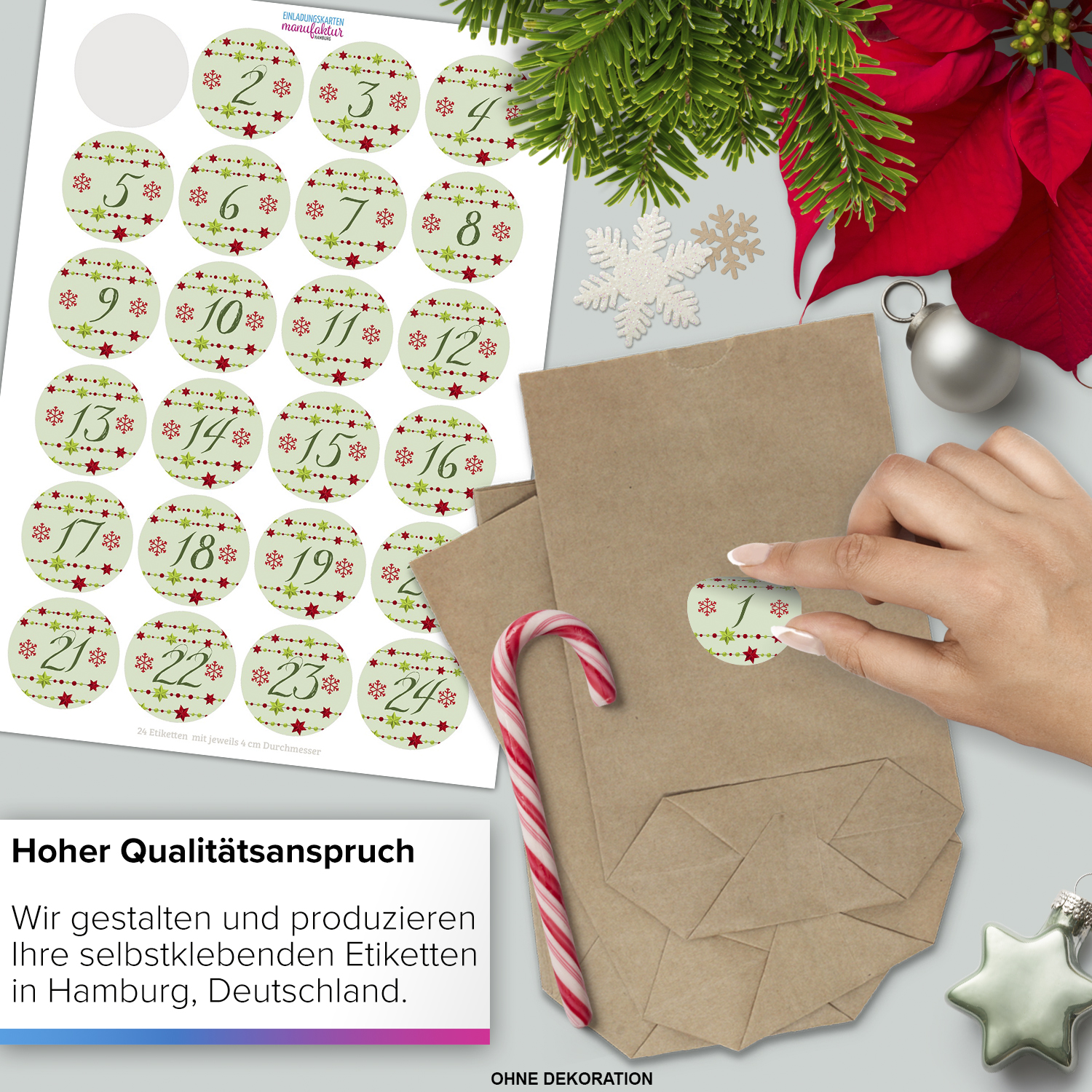 Adventskalender Set – 24 Etiketten & 24 Kraftpapier Beutel für kreative DIY-Ideen