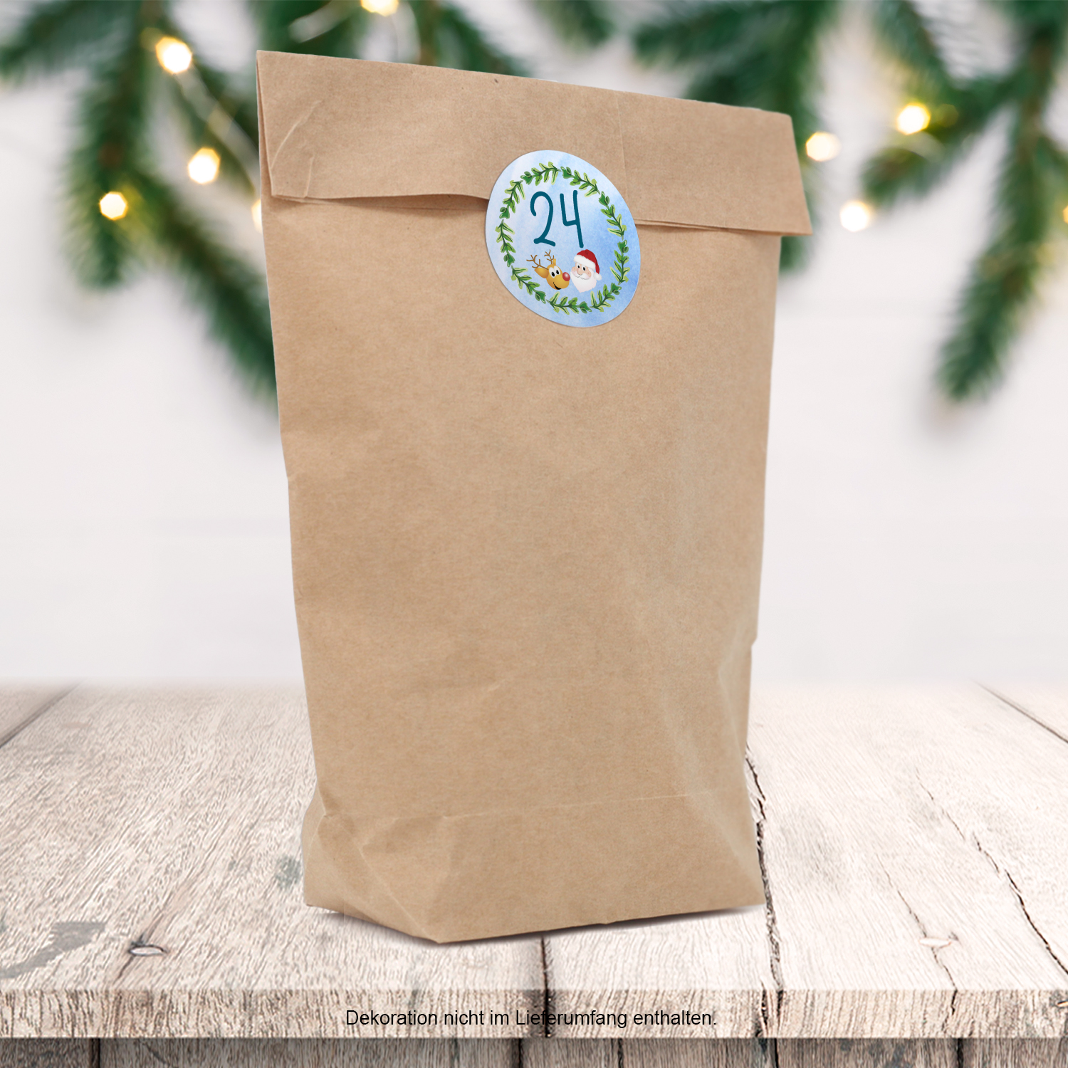 • Inhalt: 24 Zahlen Etiketten (1–24) + 24 Kraftpapier Beutel