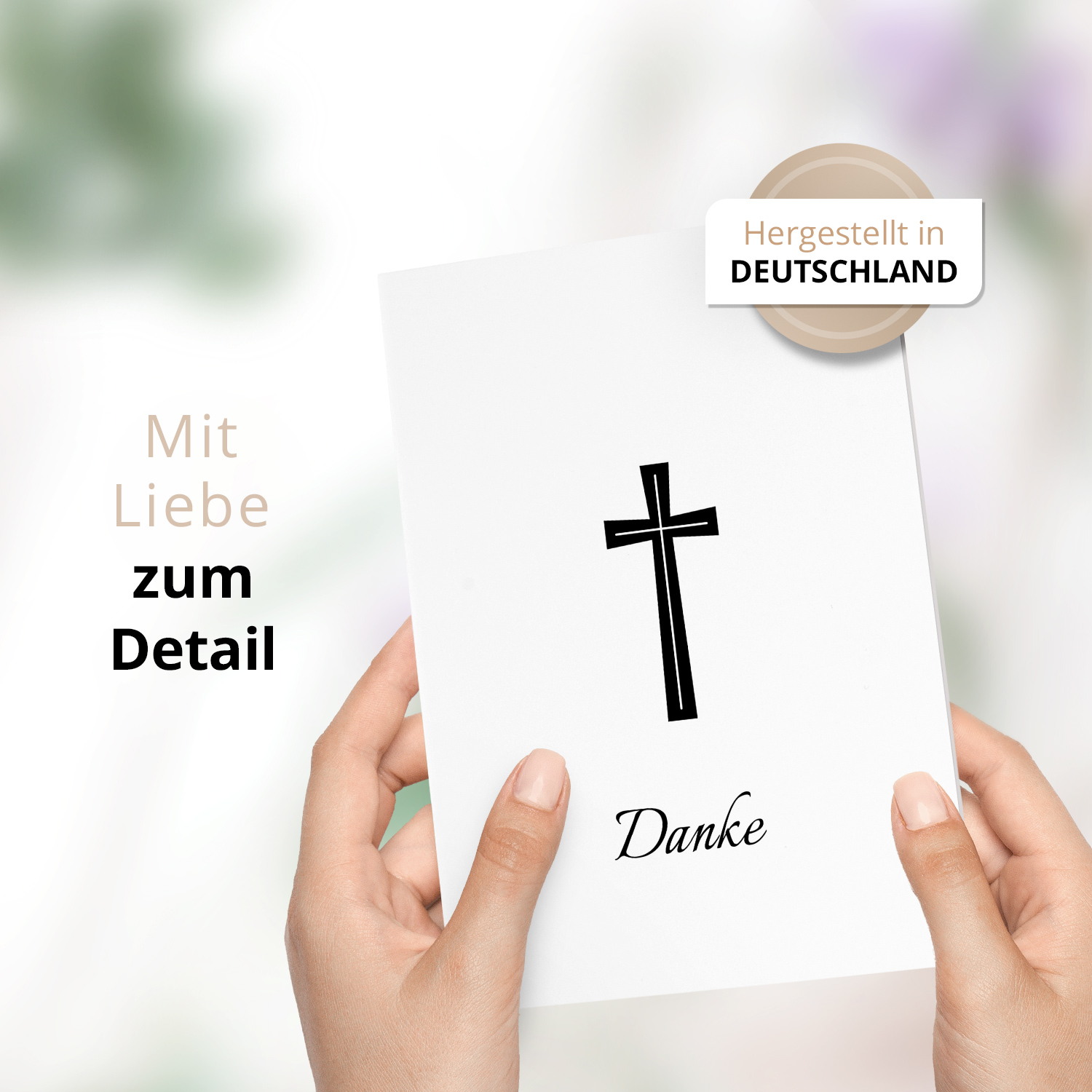 Danksagungskarten Trauer – 10 Stück mit Umschlägen – Motiv Großes Kreuz Danke – Trauerkarten Danksagung mit Text – Dankeskarten Trauer nach Beerdigung