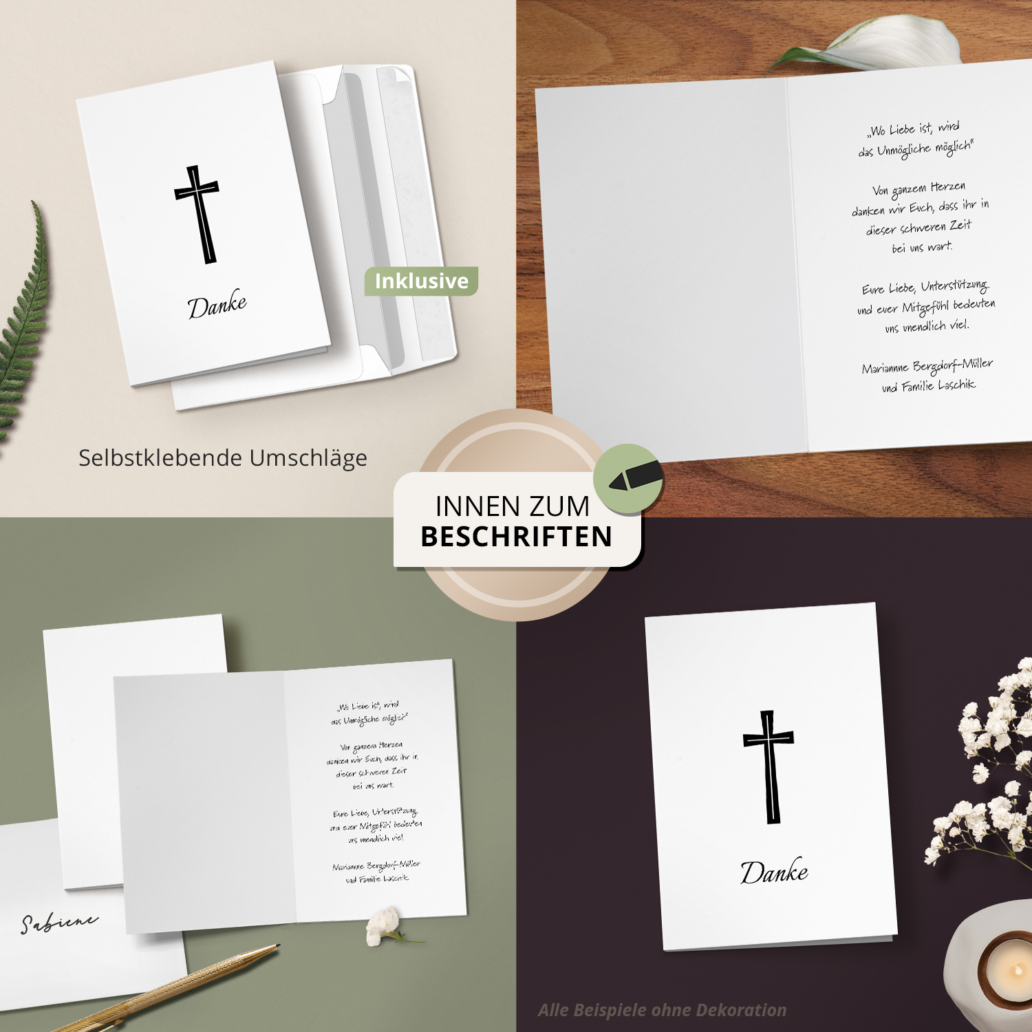 Trauer Danksagungskarten – 10 Klappkarten mit Umschlägen