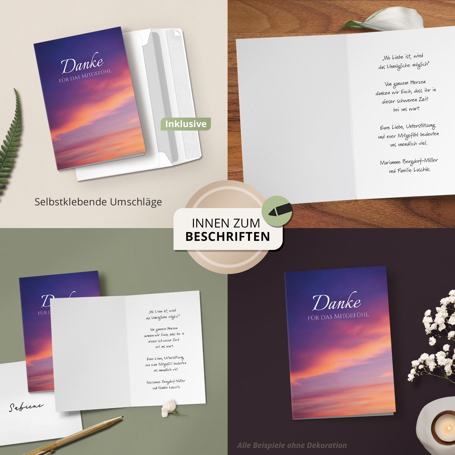 Trauer Danksagungskarten – 10 Klappkarten mit Umschlägen
