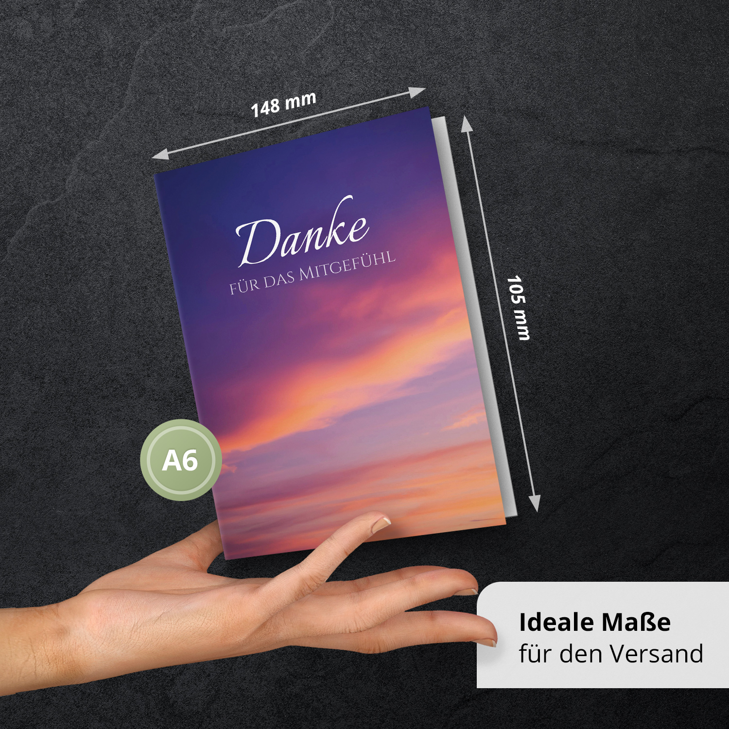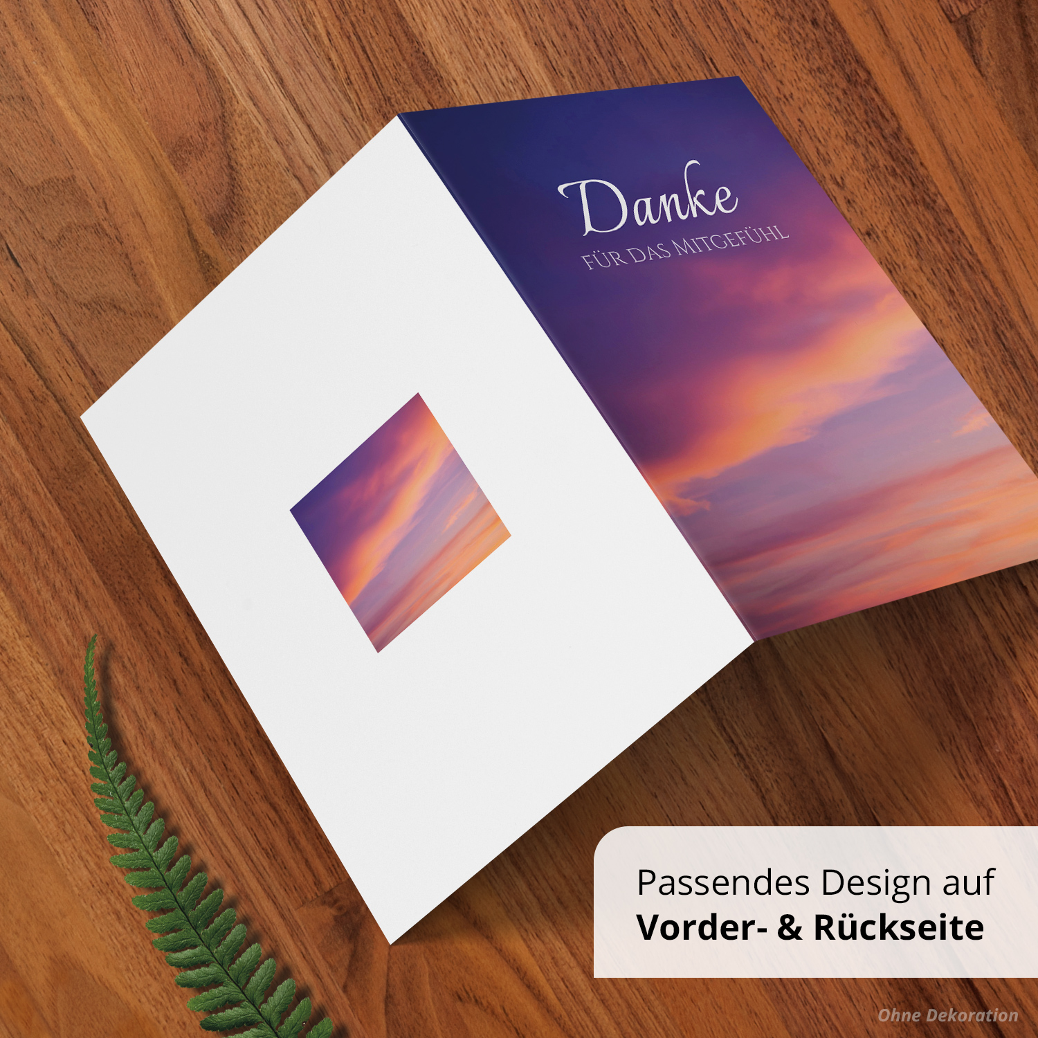 Danksagungskarten Trauer – 10 Stück mit Umschlägen – Motiv: Lila Wolken – Trauerkarten Danksagung mit Text – Dankeskarten Trauer nach Beerdigung