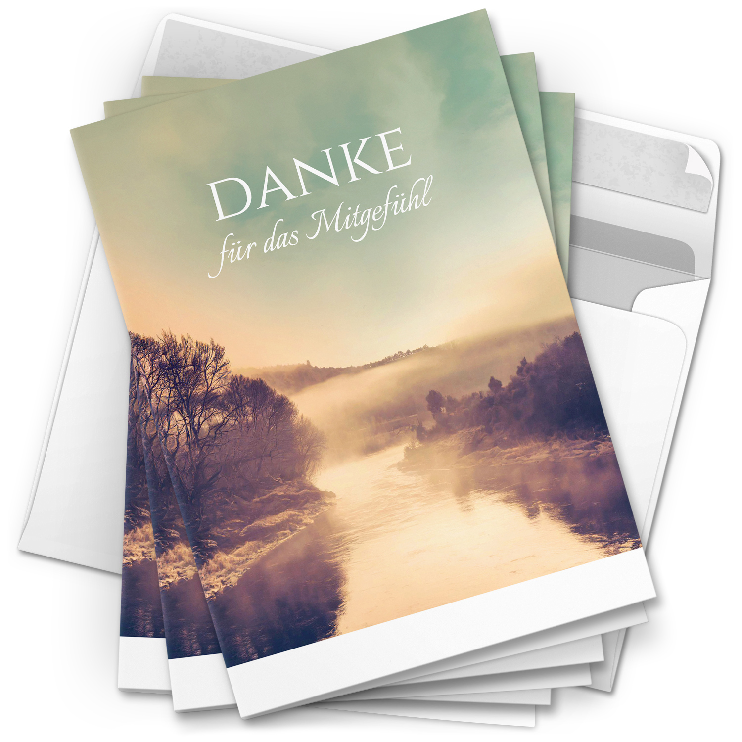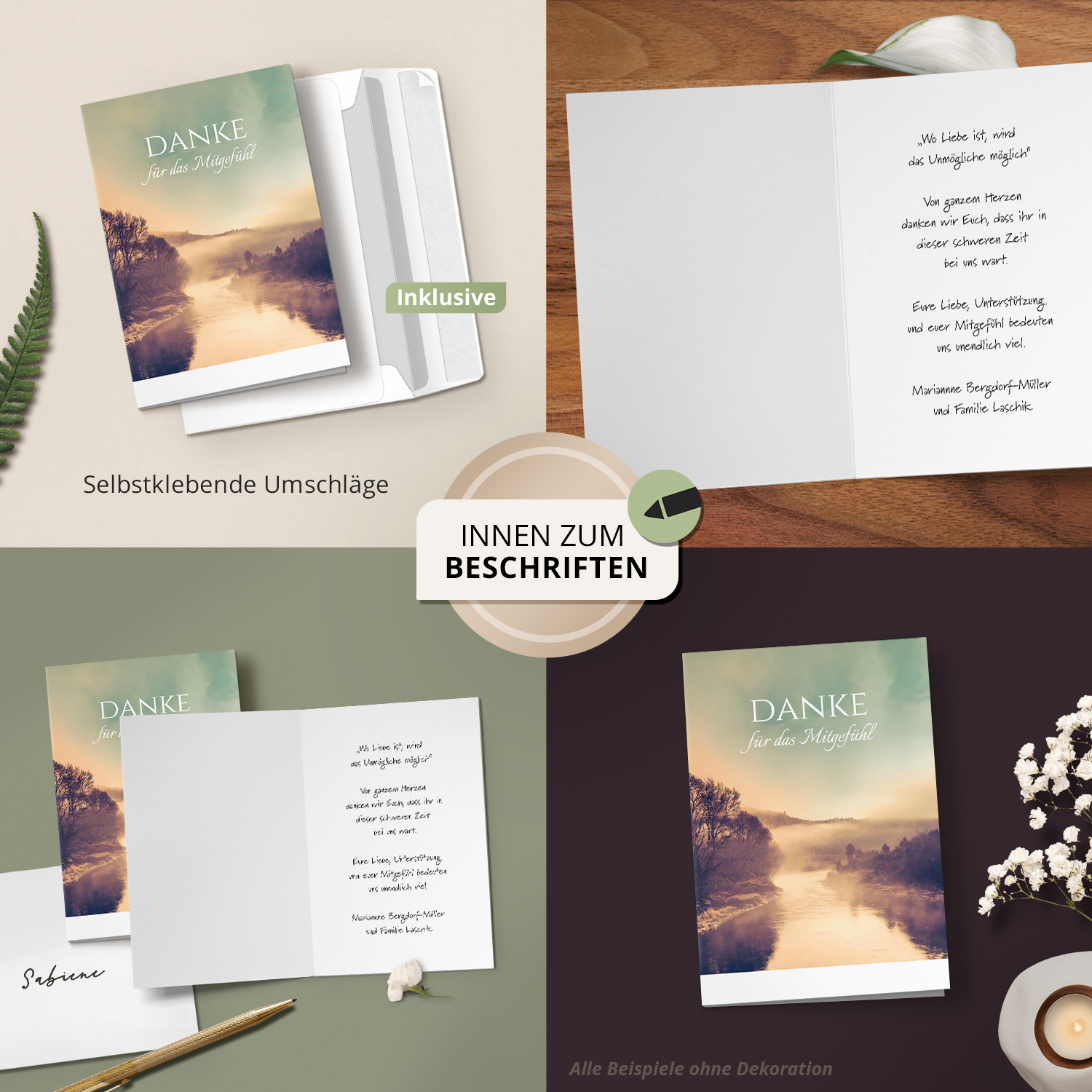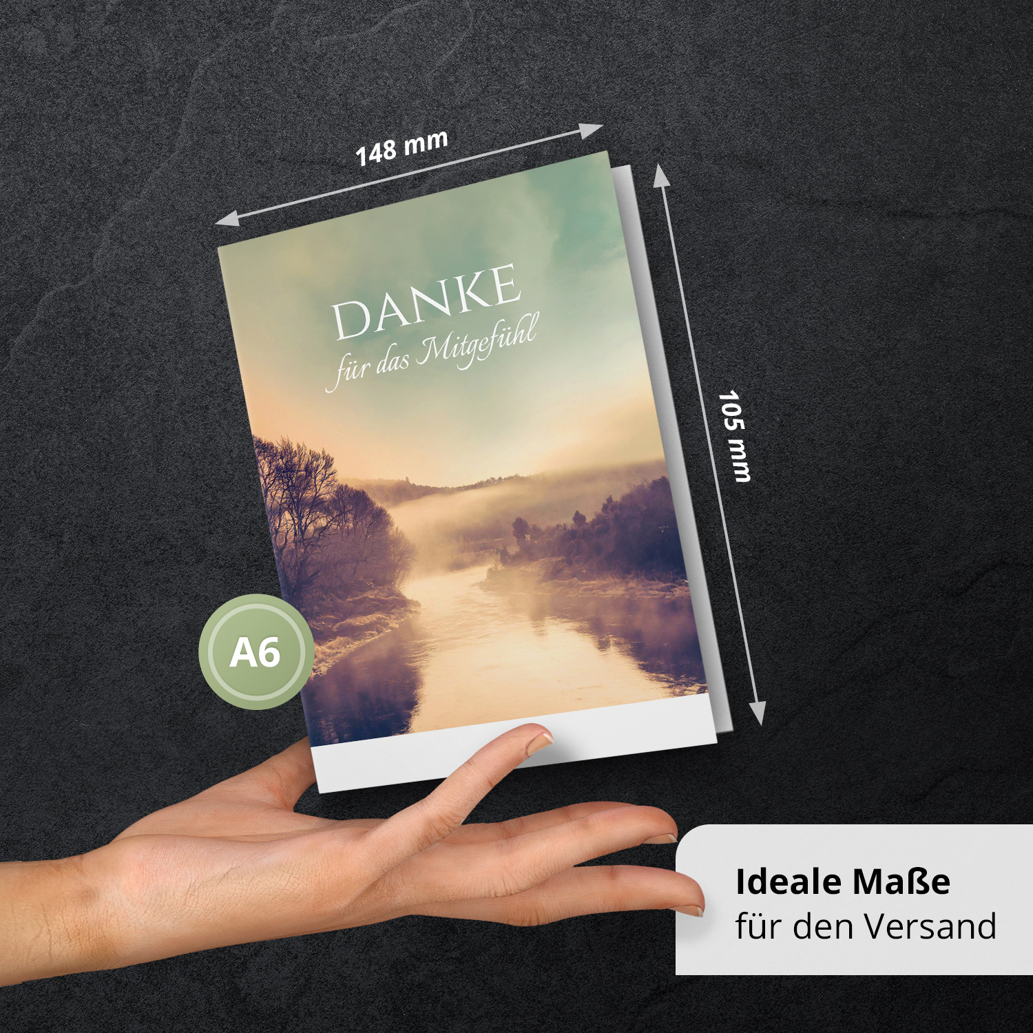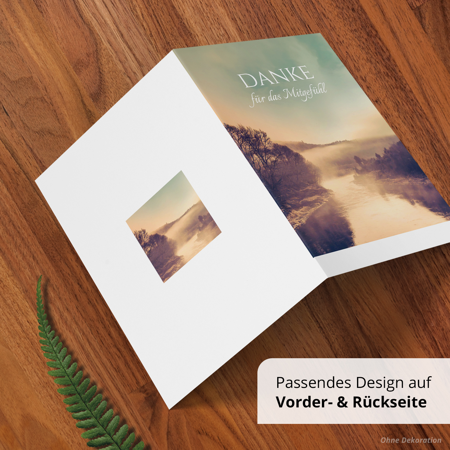 Danksagungskarten Trauer – 10 Stück mit Umschlägen – Motiv: Nebel am See – Trauerkarten Danksagung mit Text – Dankeskarten Trauer nach Beerdigung