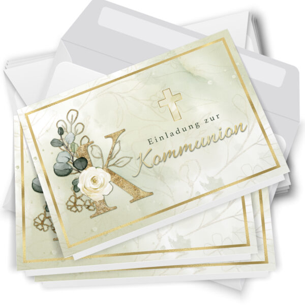 Die Einladung zur Kommunion ist der erste festliche Gruß zu einem bedeutenden kirchlichen Ereignis. Mit dieser hochwertigen Karte laden Sie Familie, Freunde und Paten stilvoll zur Erstkommunion ein. Unsere Einladungskarten zur Kommunion überzeugen durch edles Design, sorgfältige Verarbeitung und christliche Symbolik.