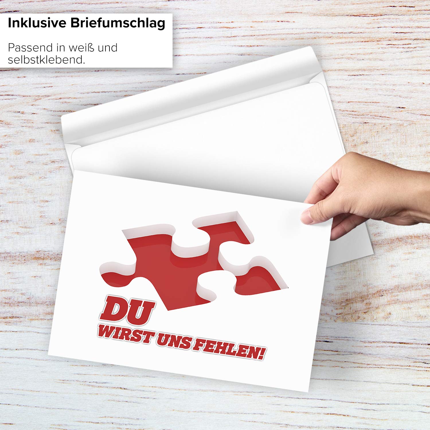 Große Abschiedskarte XXL (A4) Fehlendes Puzzle Teil Rot mit Umschlag / Edle Design Klappkarte / Rente / Pension / Ruhestand / Verabschiedung / Letzter Arbeitstag / Gruß-Karte für Kollegen