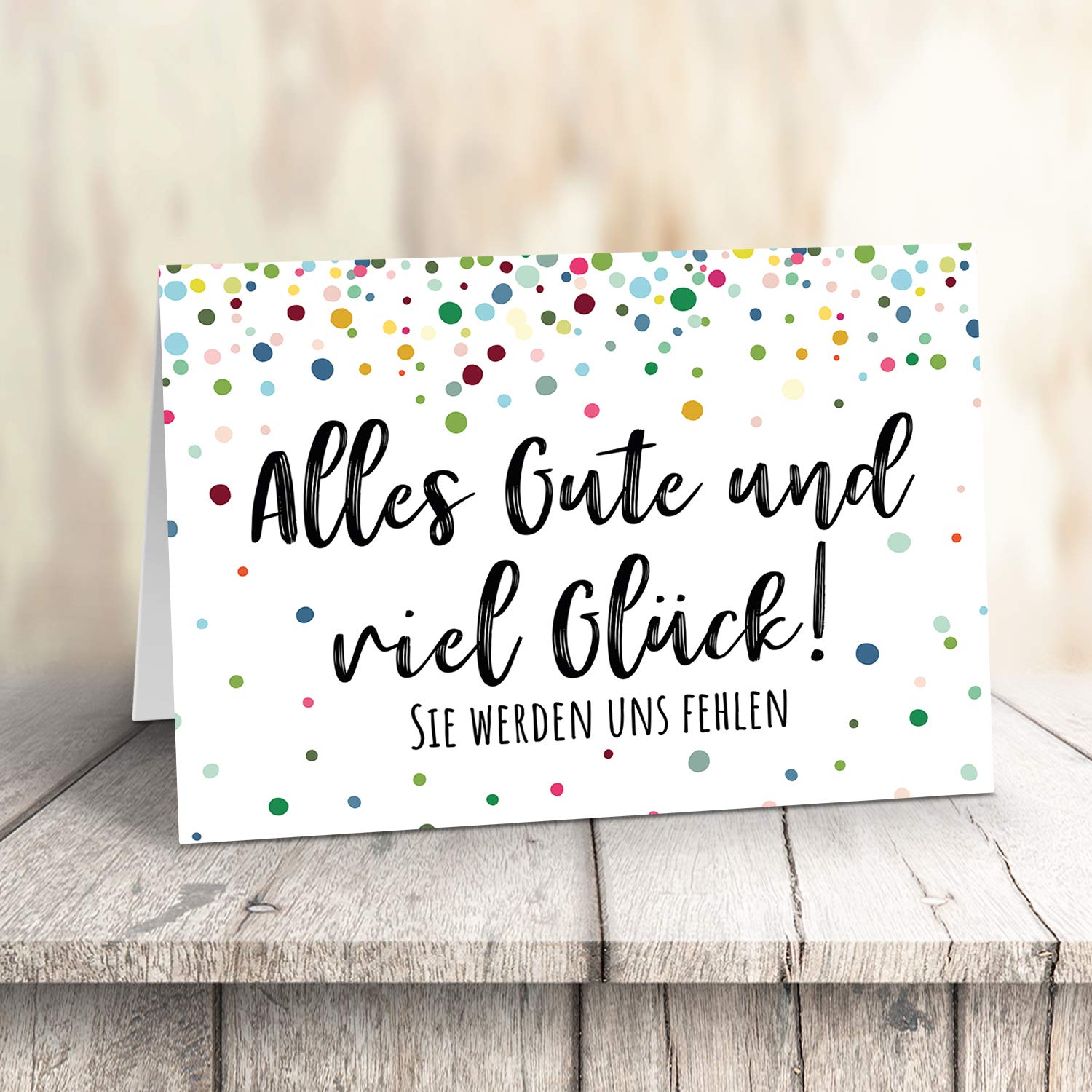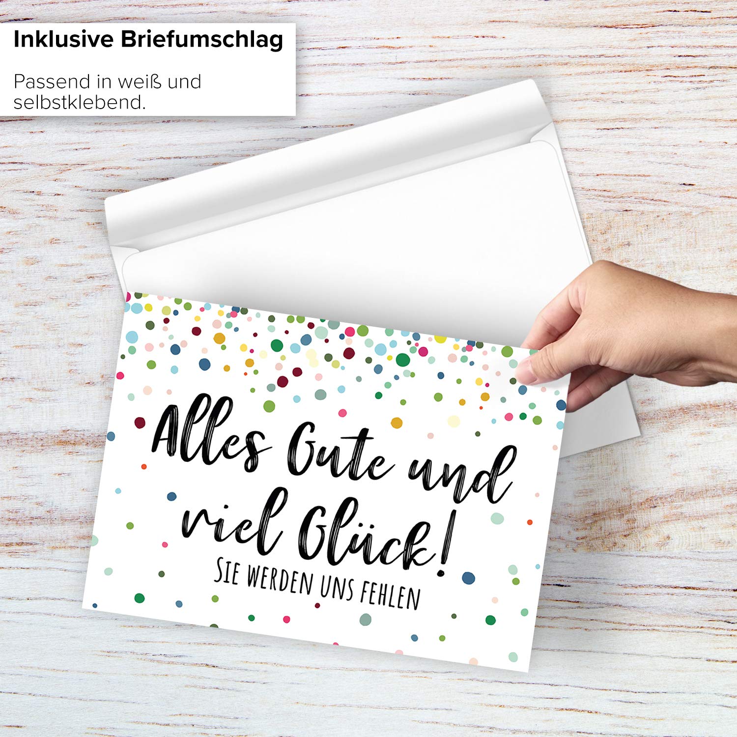 Große Abschiedskarte XXL (A4) Konfetti bunt – Sie werden uns fehlen mit Umschlag / Edle Design Klappkarte / Rente / Pension / Ruhestand / Verabschiedung / Letzter Arbeitstag / Gruß-Karte für Kollegen