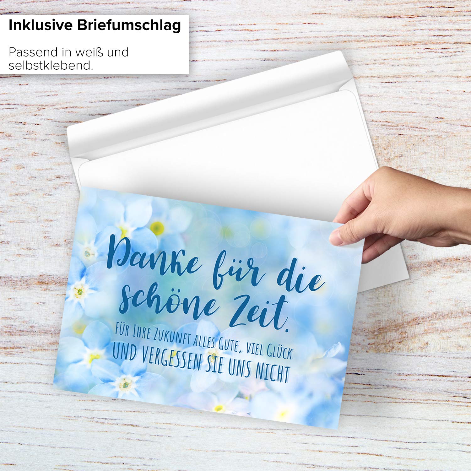 Große Abschiedskarte XXL (A4) Vergessen Sie uns nicht – Blaue Blumen mit Umschlag / Edle Design Klappkarte / Rente / Pension / Ruhestand / Verabschiedung / Letzter Arbeitstag / Gruß-Karte für Kollegen