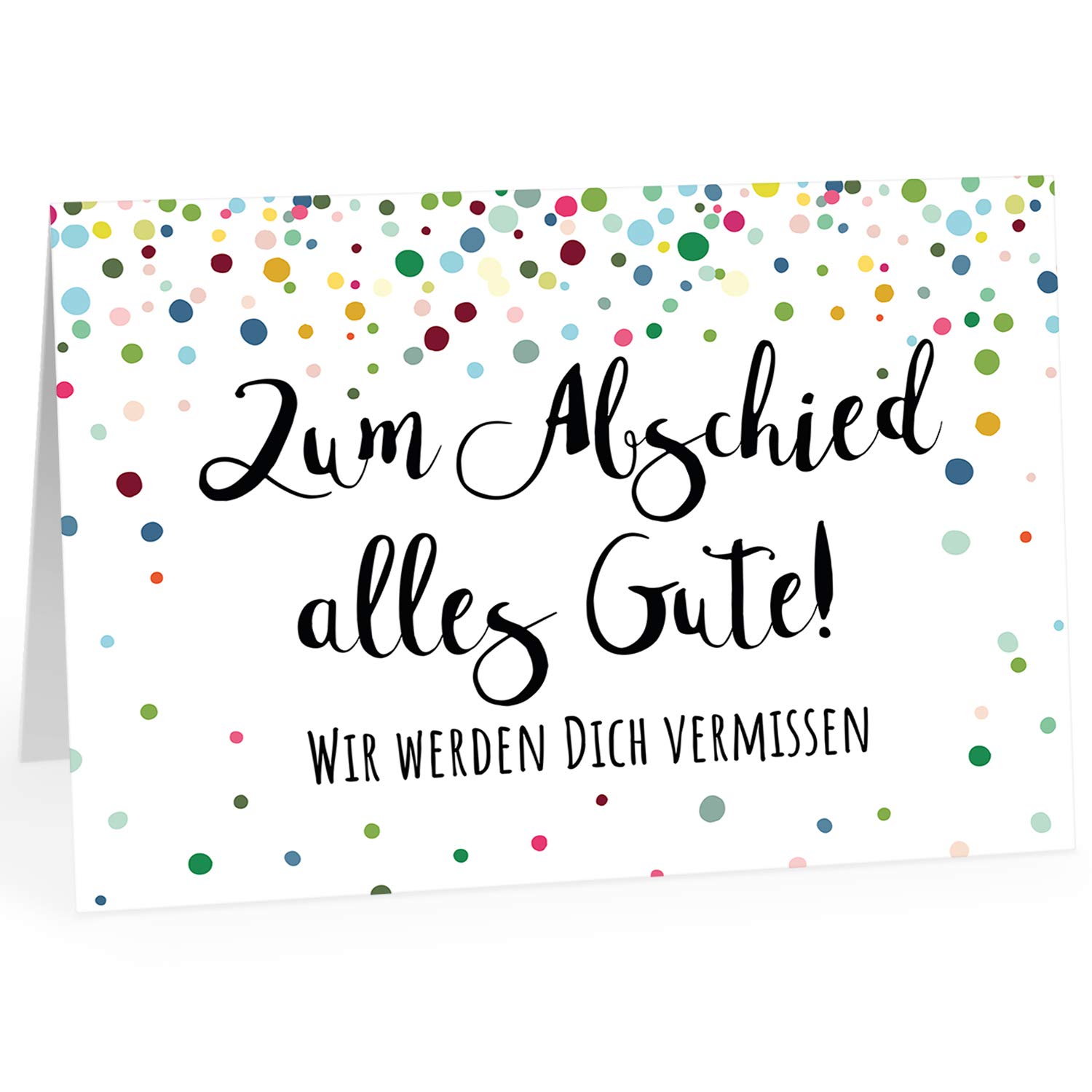 Große Abschiedskarte XXL (A4) Wir werden DICH vermissen – Konfetti bunt mit Umschlag / Edle Design Klappkarte / Rente / Pension / Ruhestand / Verabschiedung / Letzter Arbeitstag / Gruß-Karte für Kollegen