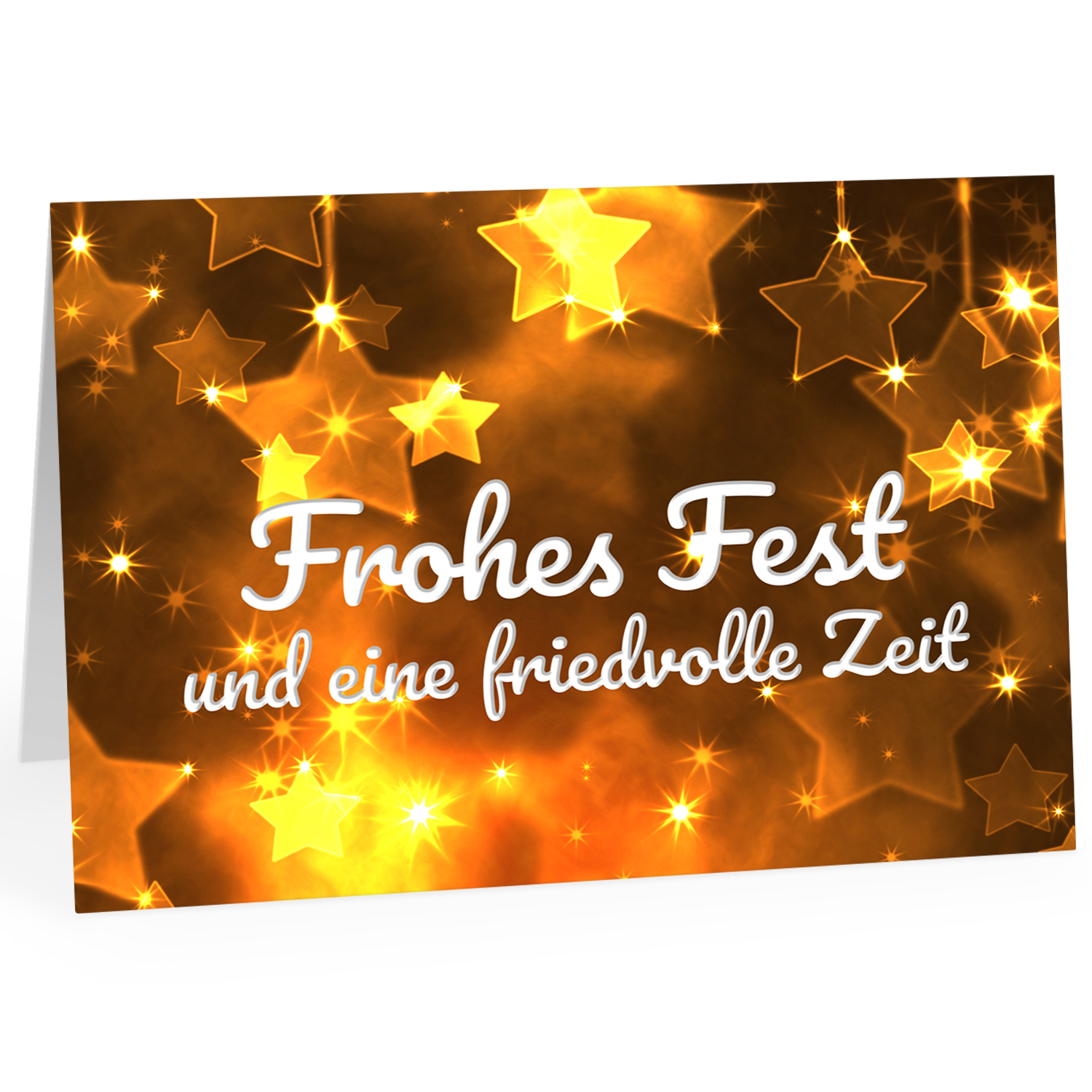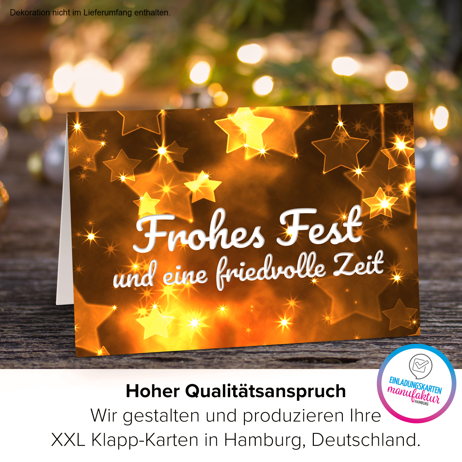 Große XXL Weihnachtskarte DIN A4 (Design Goldene Sterne – Frohes Fest) mit Umschlag / Weihnachten / Klappkarte / Grußkarte / zum Geschenk / moderne Karte