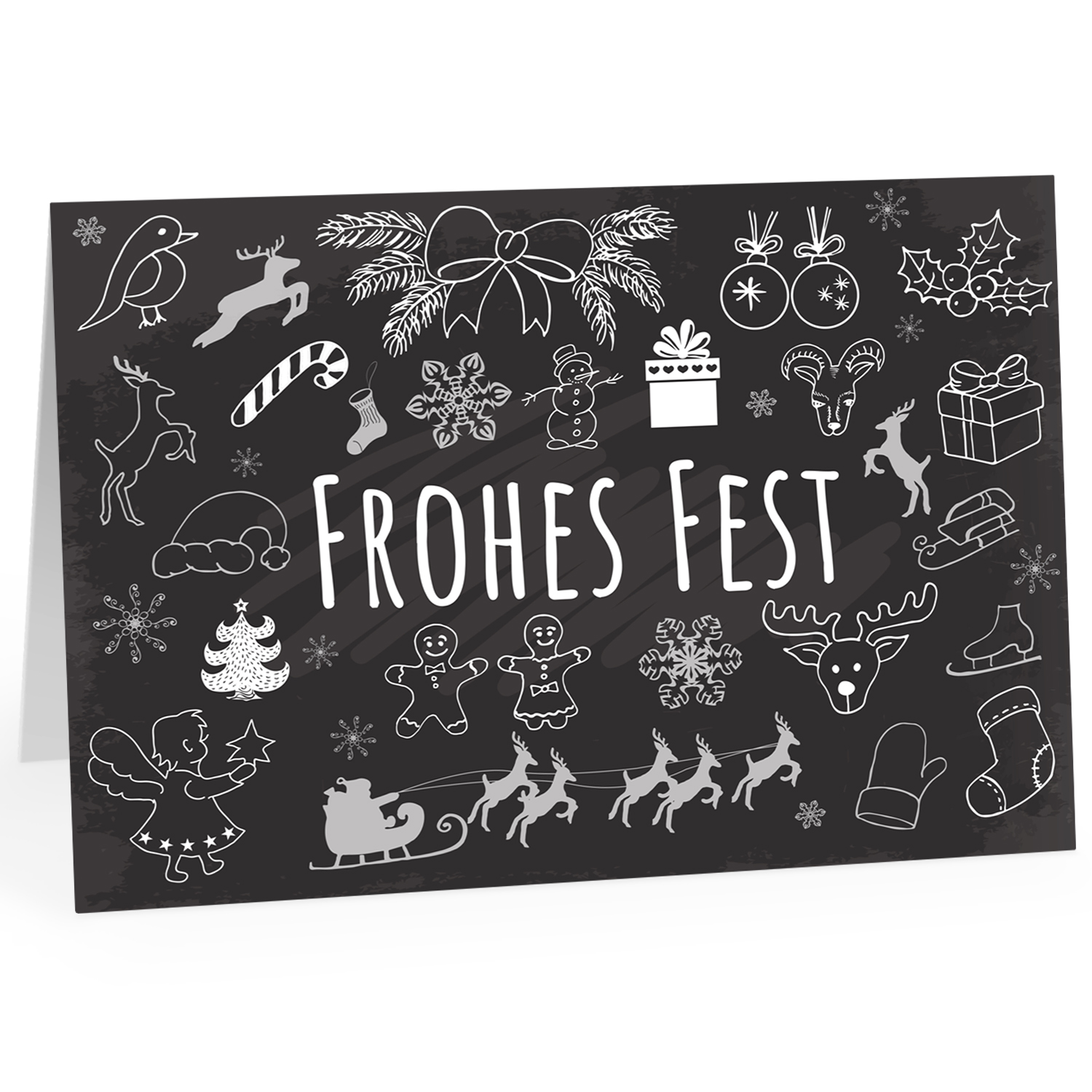 Große XXL Weihnachtskarte DIN A4 (Design Tafel Look schwarz – Frohes Fest) mit Umschlag / Weihnachten / Klappkarte / Grußkarte / zum Geschenk / moderne Karte