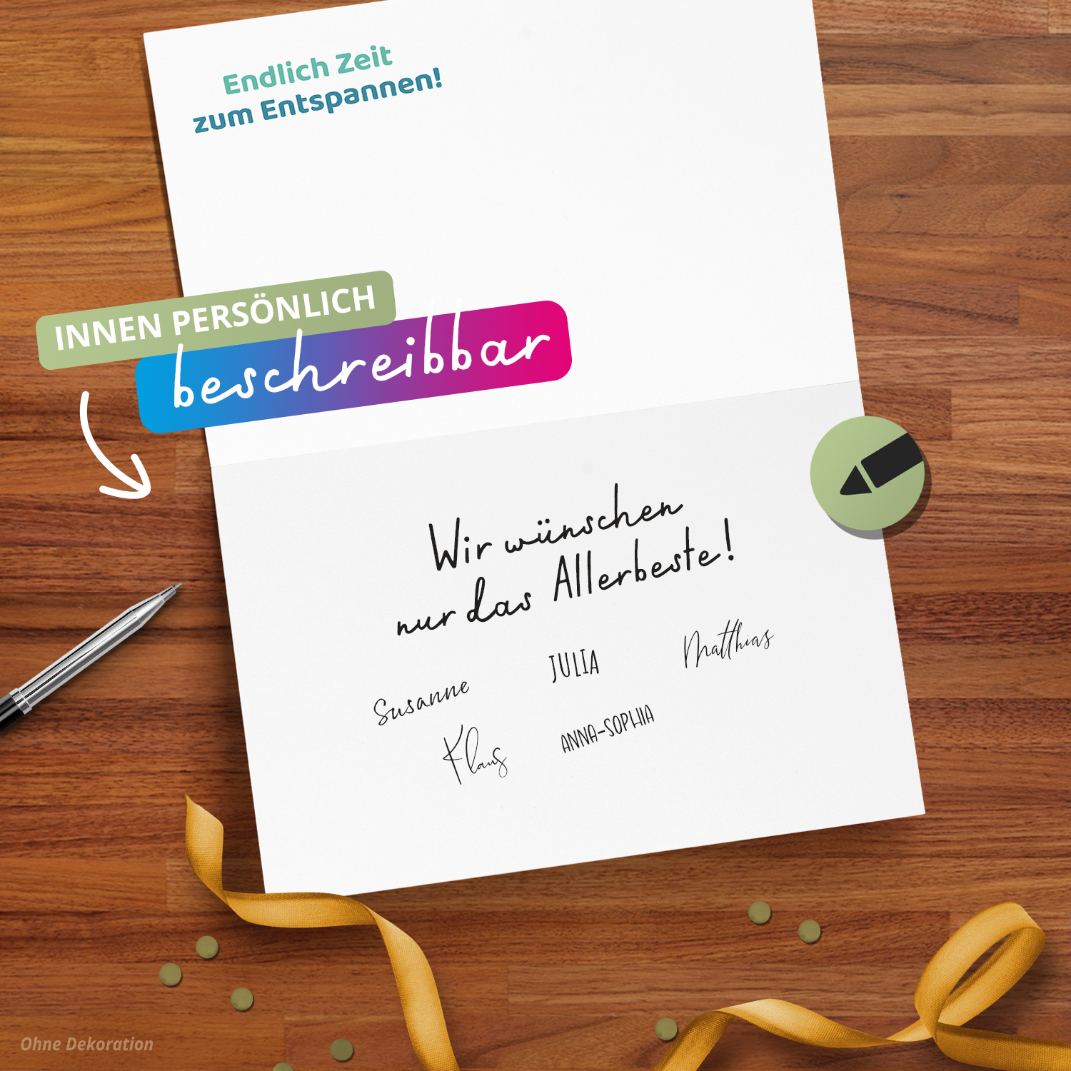 • Besonderheit: ausreichend Platz für viele Unterschriften & Texte